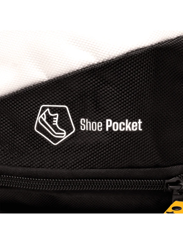 The Starvie Backpack White Sport 2026 blends a clean white look with black and gold details and a large storage capacity. It features a separate shoe section and a padded laptop compartment, making it the perfect blend of sport and everyday functionality from the Starvie 2026 collection.